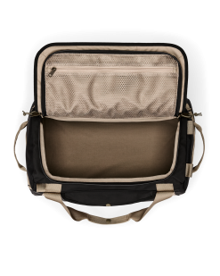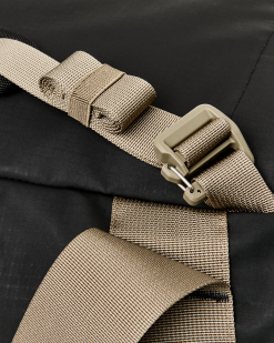Sized for weekend excursions and built to protect gear through any weather. It’s made with 100% recycled polyester fabrics treated with thermoplastic polyurethane (TPU) to prevent water entry. The main material is 300D ripstop. and the bottom boot 600D Oxford matte for added durability.