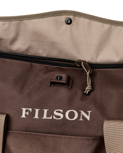 This versatile tote is made to keep gear dry through any weather. The main material is 300D polyester ripstop and the bottom boot is heavy-duty 600D polyester Oxford cloth. These fabrics are made with fully recycled material and treated with thermoplastic polyurethane (TPU) for water resistance.