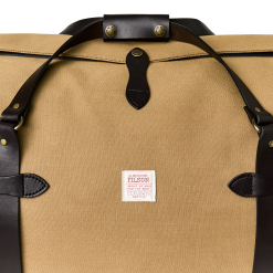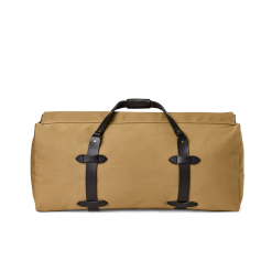 Our Rugged Twill Duffle Bags embody the philosophy that’s guided Filson since 1897. making products that are handed down rather than tossed out. Made with our signature Rugged Twill and Bridle Leather. our Large Duffle Bag is built tough enough for the most extreme conditions and sized for long excursions. The lightly waxed fabric keeps gear dry and closes with a solid brass YKK® zipper that’s protected by a snap-secured storm flap. We use Bridle Leather from Wickett & Craig for the removable shoulder strap and for the handles that wrap around the bag to securely cradle heavy loads. Interior end-cap pockets for organization.