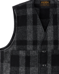 Our Mackinaw Wool Vest provides warmth with excellent breathability. even when wet. Worn over a flannel shirt or under a raincoat or wool jacket. it adds that extra bit of warmth for comfort in the cold. Mackinaw is our iconic wool that’s provided protection from cold and wet conditions for over a century. Manufactured with an uncommonly tight weave. our signature excels at blocking the wind and withstands hard use for decades. This vest’s design works just as well indoors. whether drawing up plans for your next big project or working in a chilly warehouse. The V-shaped neckline adds no bulk around the neck. so there’s still plenty of breathing room for a heavy shirt and a rain shell zipped chin-high. The front features open and slotted chest pockets plus side-entry hand pockets.