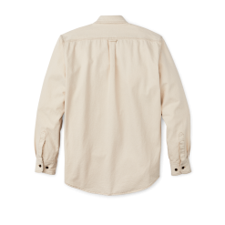 This durable classic is patterned after our iconic Alaskan Guide Shirt. a trusted favorite of bush pilots. ranchers. and sportsmen for thirty years. The 7.5-oz. fabric shares the same 2×1 twill weave and durable strength as denim. differing only in that the warp and weft yarns are the same color. This fabric was minimally processed. with tiny bits of the seeds left in the yarns for a rustic effect. Like our original Guide Shirt. the fit is a bit roomy with a center-back pleat for ease of motion. Buttons secure the front. cuffs. and chest-pocket flaps.