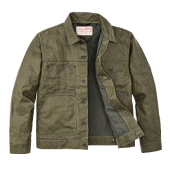 Our Short Lined Cruiser Jacket is made with Tin Cloth. our signature waxed cotton that has protected foresters and outdoorsmen from weather. brambles. and abrasion for a century. Its durable weather resistance is unequaled. Our waxed-cotton Tin Cloth from England’s historic British Millerain weighs 14 ounces per square yard. twice the weight of most imitators. Its uncommonly tight weave delivers outstanding tear strength and improved water resistance. Like heavy-duty denim. Tin Cloth breaks in and molds to the body’s contours and flex patterns.
