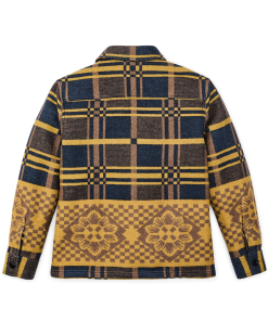 This folky. floral-pattern overshirt insulates like a warm coat. The 82% wool/18% cotton blend provides multi-season comfort and outstanding durability. Made from yarns constructed to maximize loft. the wool fabric is surprisingly lightweight for its thickness. Side-seam hand pockets provide functional utility while staying true to the garment’s design simplicity. Button-close front with spread collar.