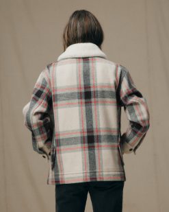 Women’s Mackinaw Wool Shearling Cruiser Jacket – Cream / Red / Black Plaid