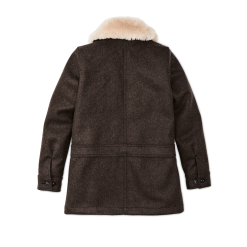 This 2021 limited-edition version of our Women’s Wool Trapper Coat is made in Seattle with our legendary Mackinaw Wool in a color that was pulled from the Filson archives. The torso is lined with our signature Alaskan Guide flannel for added warmth and the polyester lining in the sleeves slides easily over layers. A sheepskin-shearling shawl collar provides luxurious protection for your neck and ears. and the extended length provides maximum coverage. Limited quantities available.