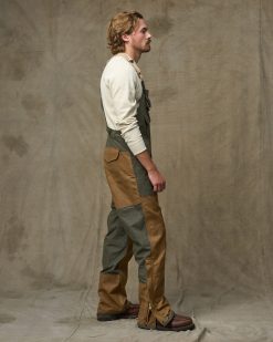 Built with our signature waxed cottons. our Double Hunting Bibs are a natural. durable barrier to rain. snow. and mud with the full-coverage comfort that only bibs can provide. They’re constructed with oil finish Shelter Cloth and reinforced with a second layer of Tin Cloth on the leg fronts. lower-backs. and seat — right where it’s needed to keep you dry. The lower-leg zippers make it easy to slip on and off over bulky boots. and they are protected by a snap-secure storm flap. Dual chest pockets keep essentials close at hand and are protected by snapped flaps. The elastic suspender straps and buttoning side gussets help you dial in custom fit for all-day comfort.