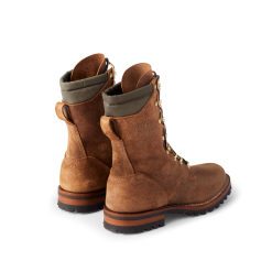 For the Filson x White’s Fire Hybrid boot. a limited-edition collaboration. we teamed up with White’s—Pacific Northwest boot-builders since 1853. Our shared history outfitting loggers and workers informs every aspect of the boot. expertly crafted by White’s from signature Filson materials. Designed to withstand the extreme heat endured by US Forest Service Hotshots when fighting wildland fires. The boots’ roughout leather won’t show scrapes and scars. Resoleable stitch-down construction ensures a lifetime of hard wear. Outfitted with Filson-exclusive oil finish Tin Cloth collars.