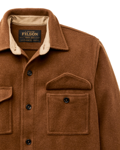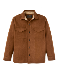 The Mackinaw Wool Jac-Shirt pulls double duty: light enough to wear like a shirt. tough enough to insulate like a coat. Its dense weave blocks wind. sheds weather. and holds warmth even when wet. The wool naturally wicks away sweat and moisture. keeping you dry mile after mile. Flapped chest pockets with hidden buttons stay clear of straps and gear.