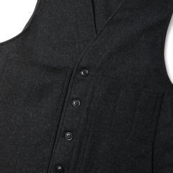 Our Mackinaw Wool Vest provides warmth with excellent breathability. even when wet. Worn over a flannel shirt or under a raincoat or wool jacket. it adds that extra bit of warmth for comfort in the cold. Mackinaw is our iconic wool that’s provided protection from cold and wet conditions for over a century. Manufactured with an uncommonly tight weave. our signature excels at blocking the wind and withstands hard use for decades. This vest’s design works just as well indoors. whether drawing up plans for your next big project or working in a chilly warehouse. The V-shaped neckline adds no bulk around the neck. so there’s still plenty of breathing room for a heavy shirt and a rain shell zipped chin-high. The front features open and slotted chest pockets plus side-entry hand pockets.