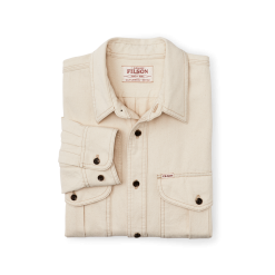This durable classic is patterned after our iconic Alaskan Guide Shirt. a trusted favorite of bush pilots. ranchers. and sportsmen for thirty years. The 7.5-oz. fabric shares the same 2×1 twill weave and durable strength as denim. differing only in that the warp and weft yarns are the same color. This fabric was minimally processed. with tiny bits of the seeds left in the yarns for a rustic effect. Like our original Guide Shirt. the fit is a bit roomy with a center-back pleat for ease of motion. Buttons secure the front. cuffs. and chest-pocket flaps.