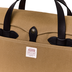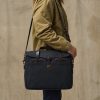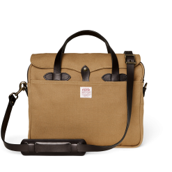 Made with our iconic Rugged Twill and Bridle Leather. the Filson Original Briefcase is built to survive any workplace. whether on land. at sea. or in the air. The lightly waxed fabric sheds water and withstands abrasion. year after year. The handles and detachable. adjustable shoulder strap are built with the same Bridle Leather that’s used for making horse tack. The roomy interior has organizational dividers and space for a 15 laptop and secures with a YKK solid brass zipper protected by a storm flap. A testament to our signature fabric’s durability. one customer recorded over one million miles of travel with his Original Briefcase.