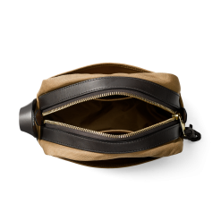 Our Rugged Twill Duffle Bags embody the philosophy that’s guided Filson since 1897. making products that are handed down rather than tossed out. Made with our signature Rugged Twill and Bridle Leather. our Travel Kit is made to keep essentials organized and protected for a lifetime of travels. The abrasion-resistant Rugged Twill is lightly waxed for water resistance. The interior is lined with nylon to prevent any spills from escaping into the rest of your luggage. Bridle Leather zipper reinforcements and grab handle. Full-width exterior stow pockets.