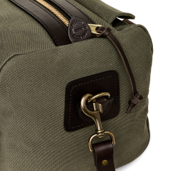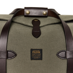 Our Rugged Twill Duffle Bags embody the philosophy that’s guided Filson since 1897. making products that are handed down rather than tossed out. The bag is made from Rugged Twill. an industrial-strength canvas from Britain’s most storied mills that is lightly waxed for water resistance. The durable Bridle Leather for the handles is strong enough for horse tack and wraps completely under the bag to cradle the heaviest loads. The solid brass zipper from YKK® is rustproof for a lifetime of dependable service. Tin Cloth canvas binding on interior seams prevents fraying and wear. Each interior endcap features a stow pocket for organizing smaller essentials and the Bridle Leather shoulder strap is detachable for hand carry. Custom sand-cast brass hardware.