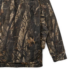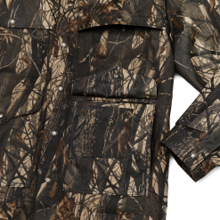 Our oil finish Tin Cloth is a tightly woven canvas duck that’s been thoroughly saturated with paraffin under high pressure and heat. This process forces the wax into the core of the cotton fibers for lasting water resistance. This Cruiser fuses Tin Cloth’s legendary durability and weather resistance with the original Realtree® Hardwoodsâ„¢ camouflage pattern that we first used 25 years ago.