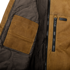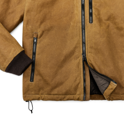 This warm and durable jacket is made with heavy-duty waxed canvas for protection from cold. wet weather. Our signature Tin Cloth is combined with PrimaLoft® insulation for an unrivaled blend of durability and warmth. Tin Cloth’s tight weave makes it exceptionally resistant to punctures. tears and abrasion. it can be rewaxed repeatedly over the years to maintain water resistance for decades of service.