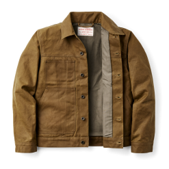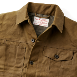 Our Short Lined Cruiser Jacket is made with Tin Cloth. our signature waxed cotton that has protected foresters and outdoorsmen from weather. brambles. and abrasion for a century. Its durable weather resistance is unequaled. Our waxed-cotton Tin Cloth from England’s historic British Millerain weighs 14 ounces per square yard. twice the weight of most imitators. Its uncommonly tight weave delivers outstanding tear strength and improved water resistance. Like heavy-duty denim. Tin Cloth breaks in and molds to the body’s contours and flex patterns.