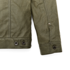Our Short Lined Cruiser Jacket is made with Tin Cloth. our signature waxed cotton that has protected foresters and outdoorsmen from weather. brambles. and abrasion for a century. Its durable weather resistance is unequaled. Our waxed-cotton Tin Cloth from England’s historic British Millerain weighs 14 ounces per square yard. twice the weight of most imitators. Its uncommonly tight weave delivers outstanding tear strength and improved water resistance. Like heavy-duty denim. Tin Cloth breaks in and molds to the body’s contours and flex patterns.