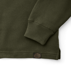 Our Waffle Knit Thermal Crewneck is knitted with thick Peruvian cotton blended with a bit of polyester. Soft and comfortable against the skin. the waffle-knit construction traps a layer of warm air for exceptional thermal retention. Worn solo or under a jacket. this dependable classic style provides versatile comfort in a wide range of temperatures. Rib-knit cuffs stay in place for easy layering. The long-staple Peruvian cotton is soft and sturdy.