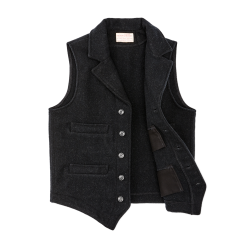 Our Mackinaw Wool Western Vest shrugs off wind and light rain while providing warm insulation. wet or dry. The notched lapels and pointed hem are a nod of respect to the bold pioneers who settled the West. Vests. known as waistcoats in Britain. were considered a requirement for proper attire in those days. The front pockets were sized and located for quick access to timepieces. Those same features that made the vest an indispensable garment on the range make our Western Vest a companion no matter where your journey leads.