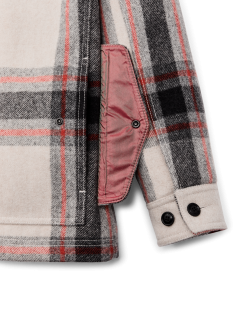 Women’s Mackinaw Wool Shearling Cruiser Jacket – Cream / Red / Black Plaid